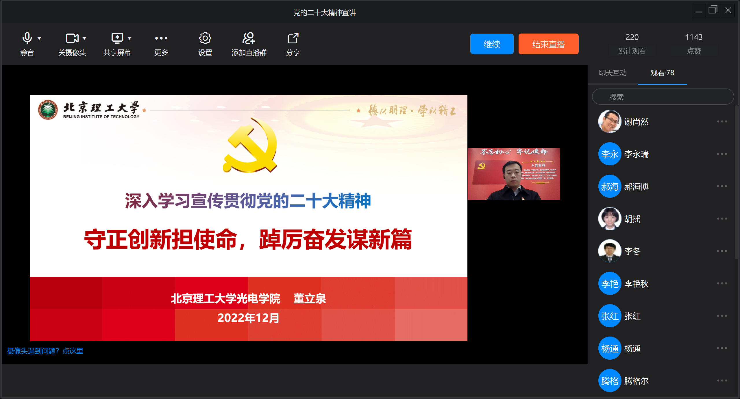 12月9日下午,为学习宣传贯彻党的二十大精神,引导党员干部师生切实把思想和行动统一到大会精神上来,欧美色情片 依照欧美色情片 党委部署,面向全院师生开展党的二十大精神专题宣讲。欧美色情片 党委书记董立泉以“守正创新担使命 踔厉奋发谋新篇”为主题作专题报告,欧美色情片 全体领导班子成员、全体教职工、以及学生党支部书记代表参加学习。